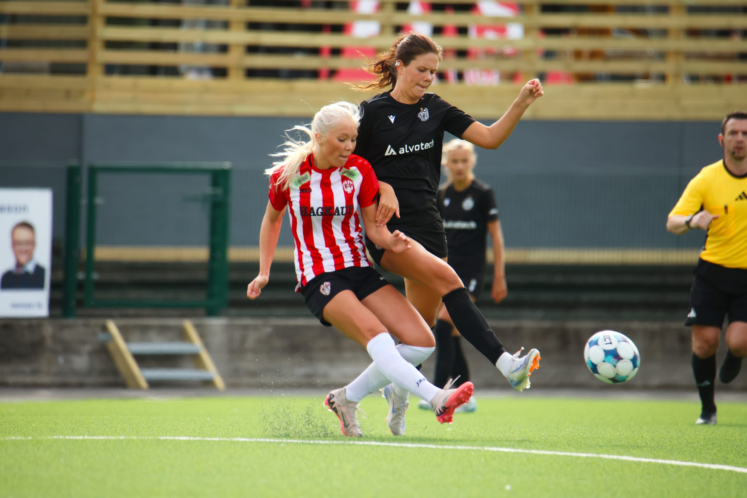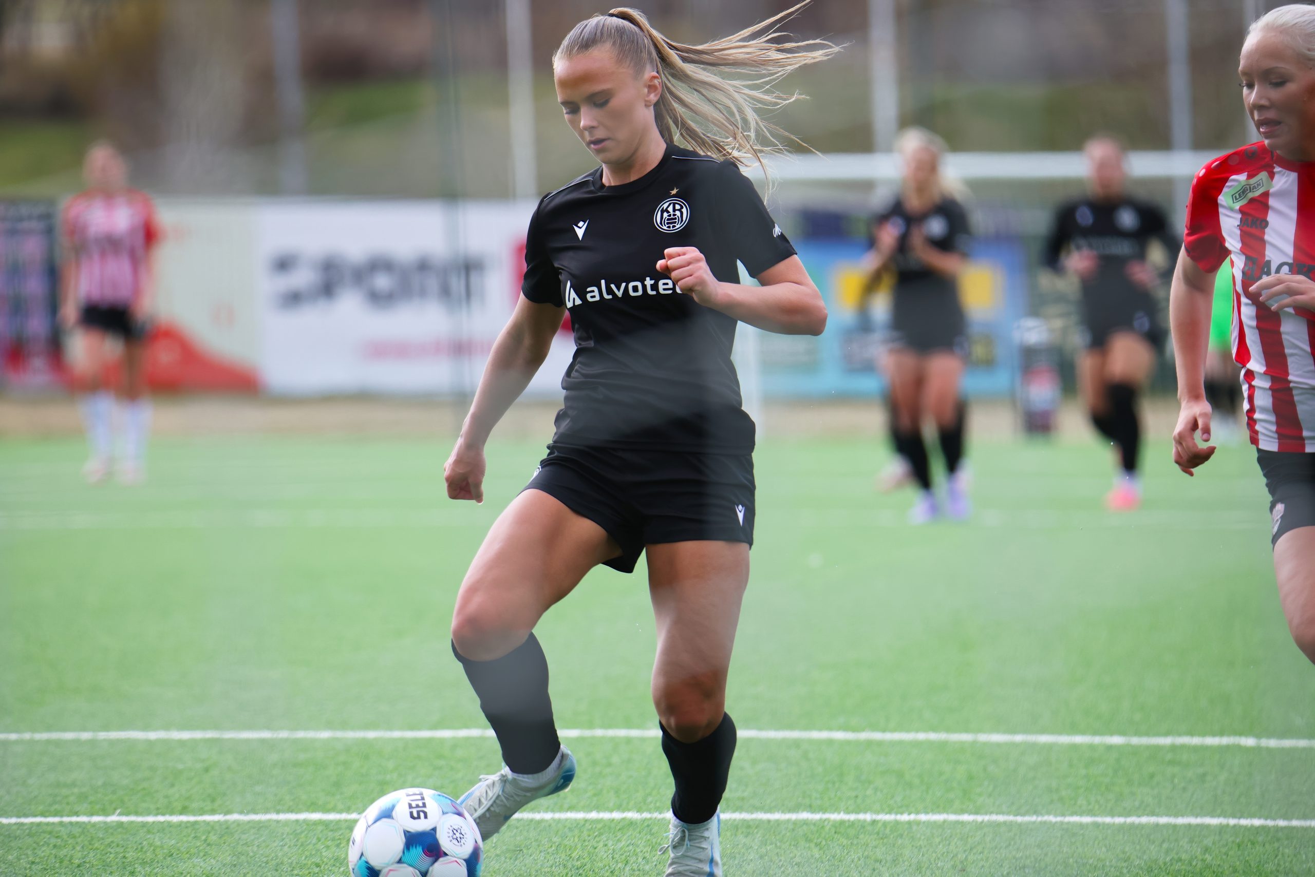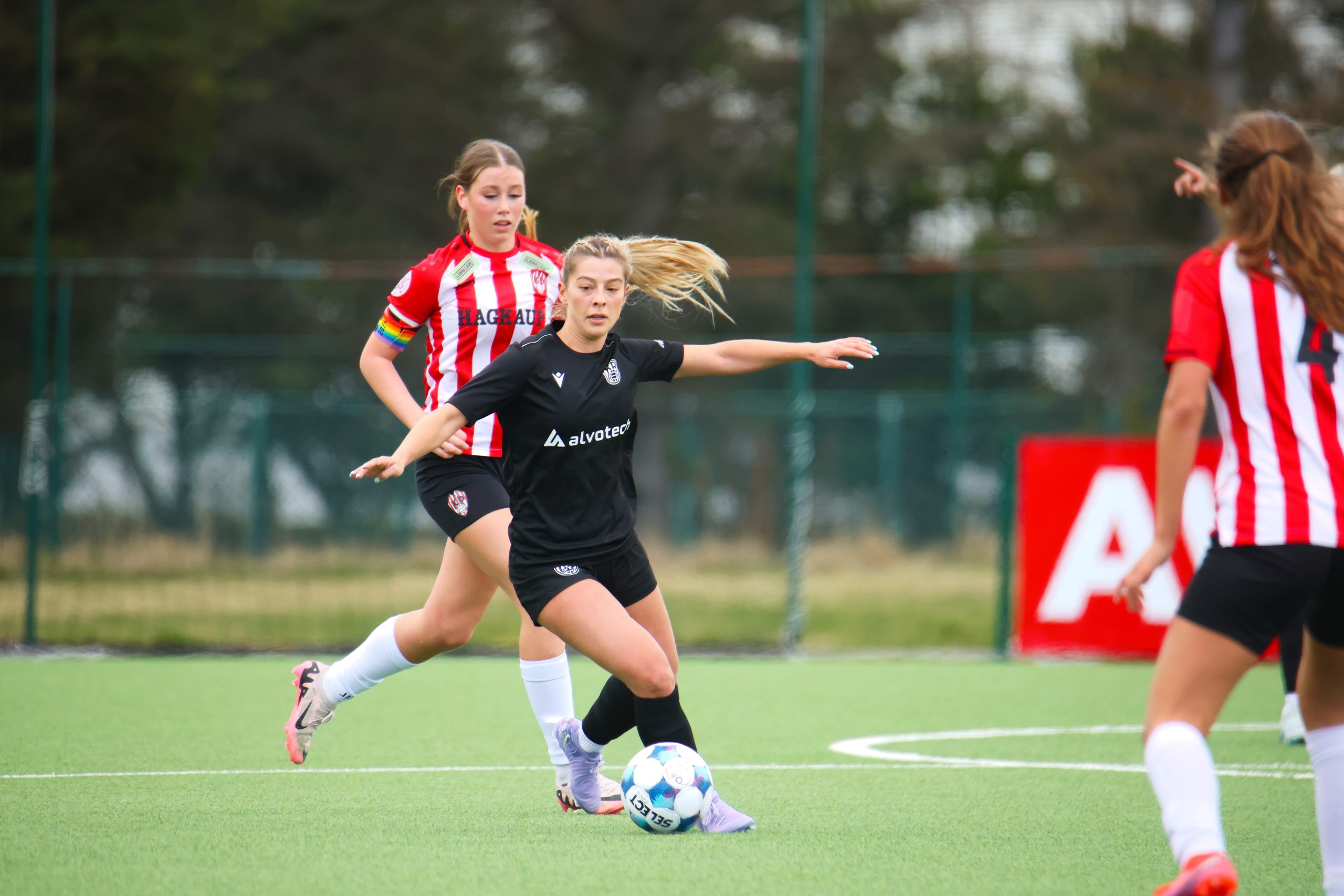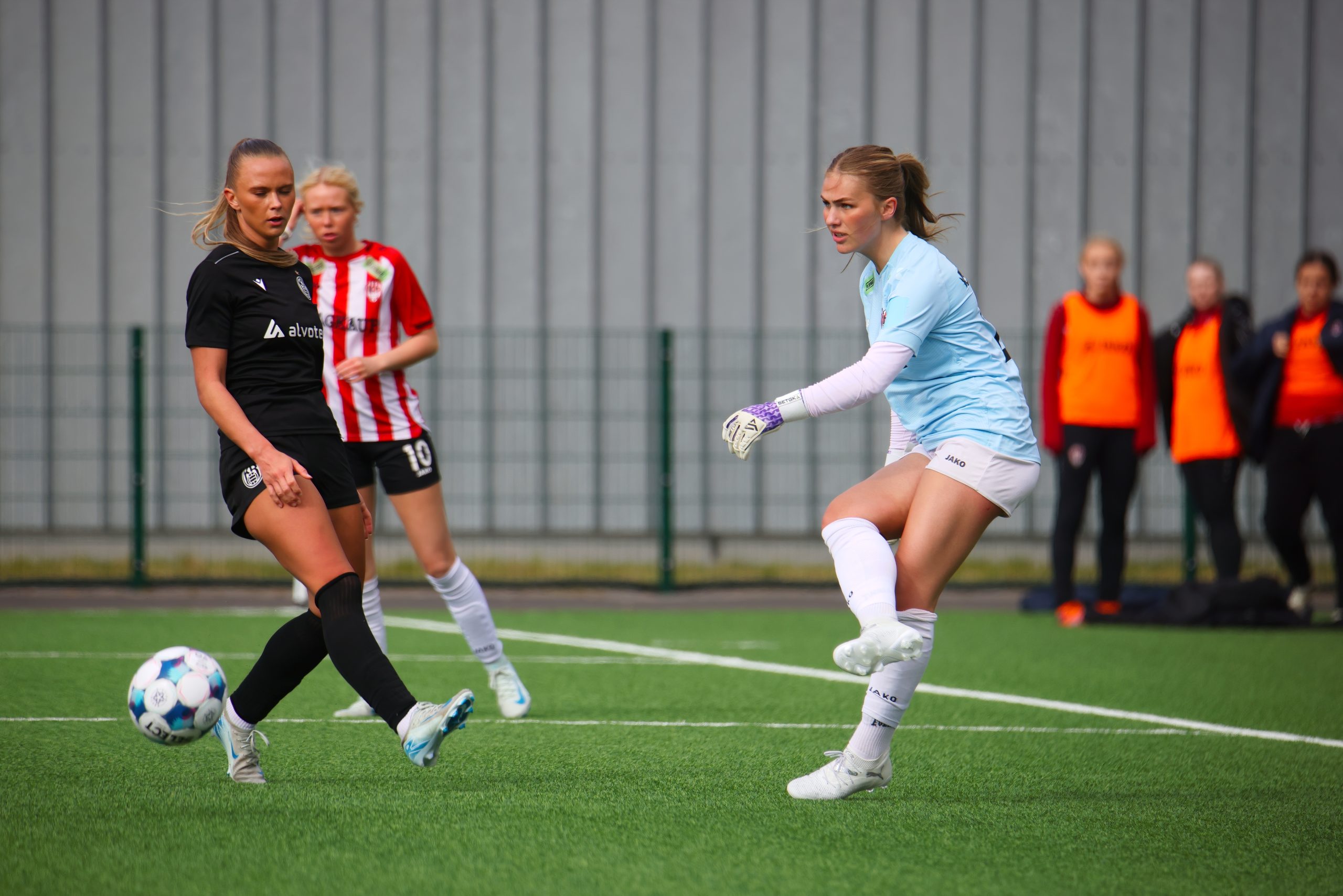 KÞ goalkeeper and U16 international Hafdís Hafsteinsdóttir is able to keep the ball from oncoming attacker Katla Guðmundsdóttir. But the latter would keep causing problems for the hosts’ defense all game. With multiple youth internationals in each squad, recent U19 player katla is the most capped for Iceland – so far at least.