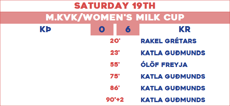 Katla Guðmundsdóttir scored four goals in the game, adding on to the 11 she scored in 7 Lengjubikar games this pre-season. If the match report is correct she had six of those in the game against Grindavík/Njarðvík, which would make the effort against KÞ the second hat-trick of her senior career, without ever having scored exactly three.