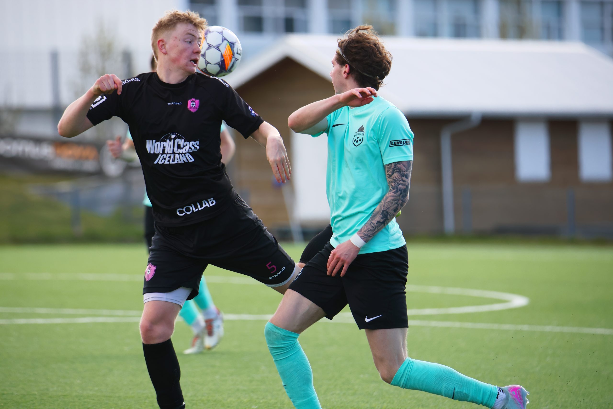 Daníel Gylfason and Arnór Daði Gunnarsson measure the bounce of the ball. Both players featured in the two fixtures between these clubs last season as well, with a 2-1 home win for Árbær in june and a 1-1 draw in August.