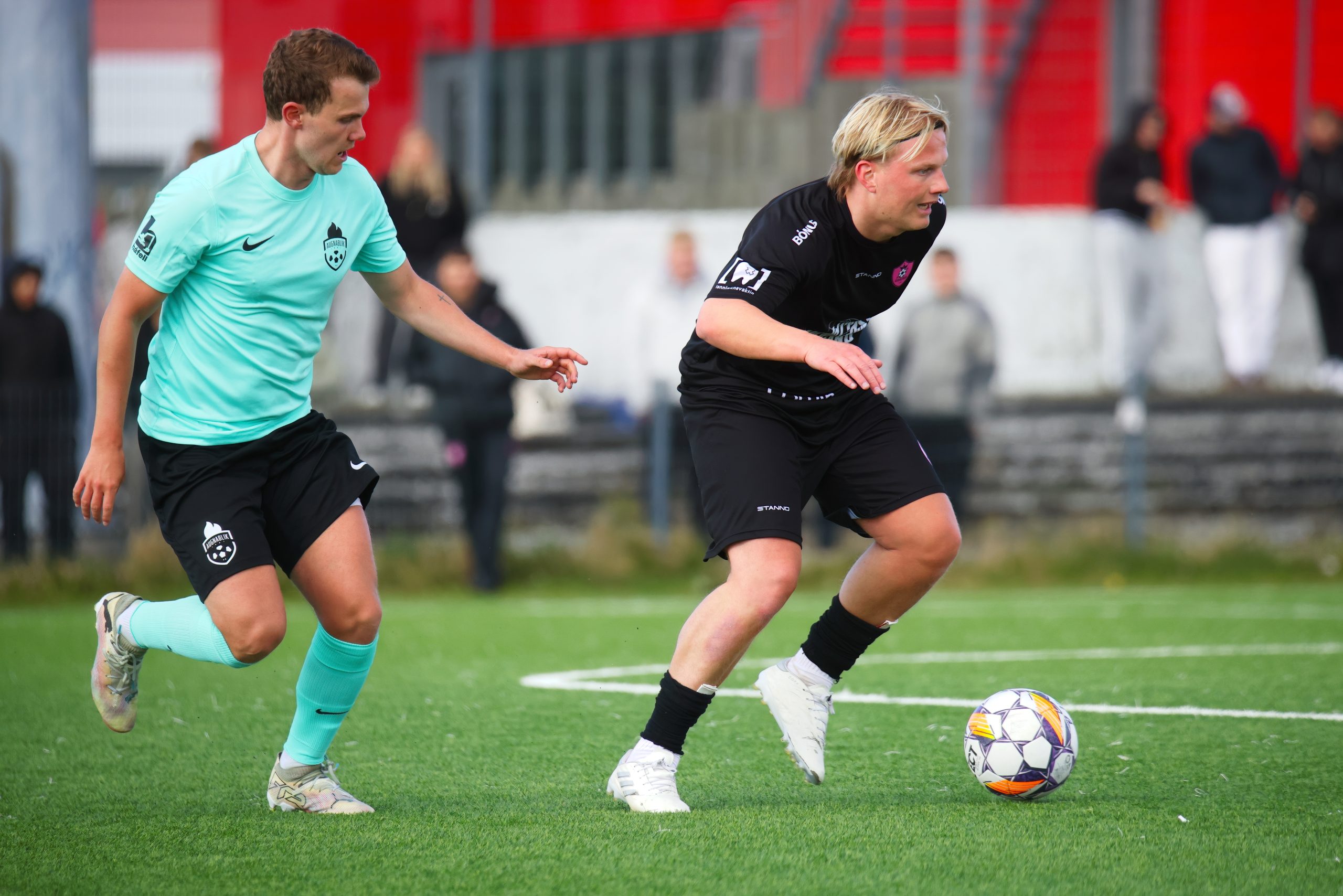 Second half substitute Atli Dagur Ásmundsson skips away from Gabríel Þór Stefánsson who also started on the bench, though came on for Augnablik after just 18 minutes.